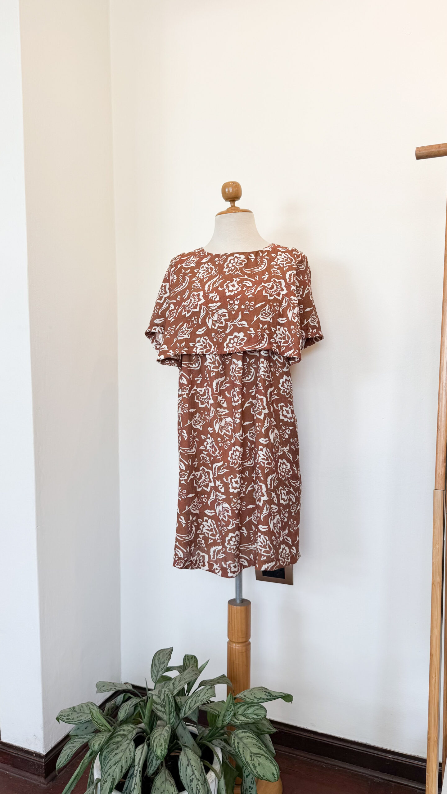 Su tono marrón con print orgánico aporta carácter sin perder elegancia.